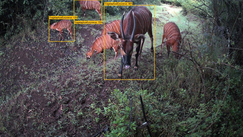 Technology is also playing a growing role in protecting the species. In April 2024, we partnered with Kenya Wildlife Service and Liverpool John Moores University's Conservation AI team to develop the world's first AI-powered detection system for mountain bongos - cameras that provide real-time data on the animals' behaviour, movement and health without disturbing them.